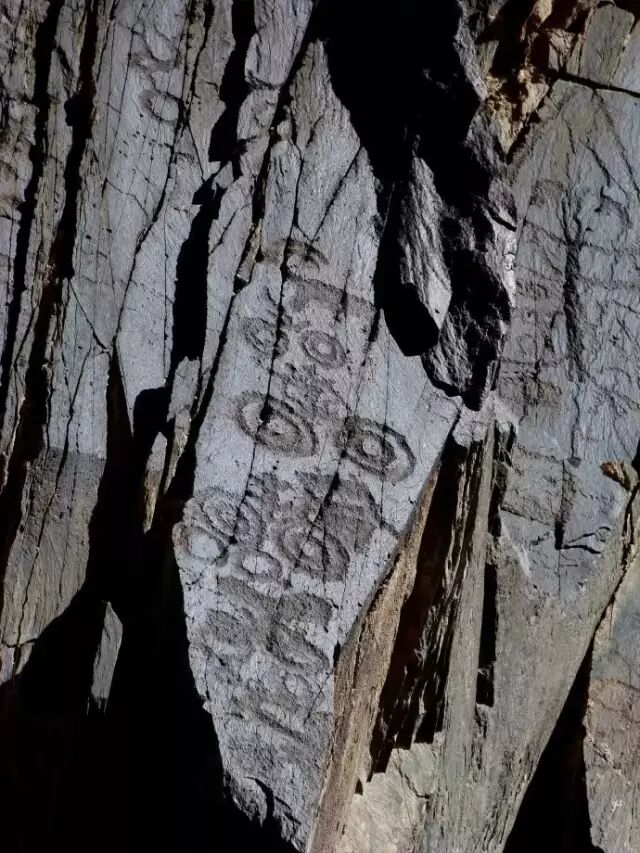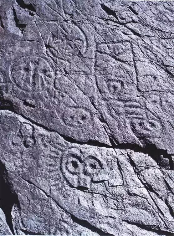 (Qingkou İlçesi'nin kuzeybatısındaki Agui Tapınağı bölgesindeki Yinshan kaya resimleri daha dağınıktır. Buradaki kaya resimleri, dağın tepesindeki farklı boyutlardaki monolitik yüzlere, bazıları da dikey kayalıklara oyulmuştur. Taşın üzerinde taşlama, ancak çoğunlukla yamaçta taşlama.)