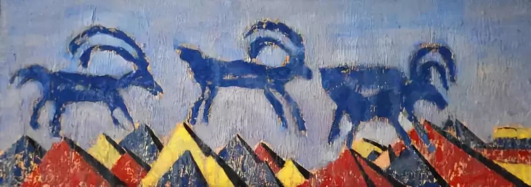(Kentte genç bir ressam olan Shi Xin'in resmi, "Kaya Boyama İzleniminin Üç Koyun Figürü")